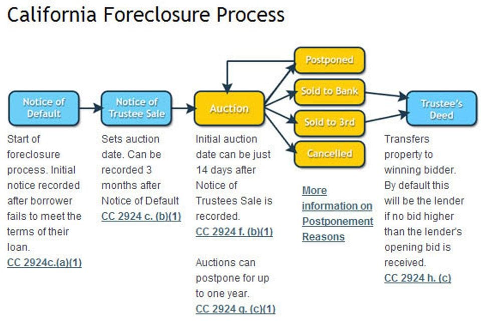 If you default on your loan by falling behind in payments or breaching the agreement in some other way, the servicer will probably refer the loan to an attorney or trustee for foreclosure. Foreclosure works differently in each state, but California has nonjudicial foreclosures.